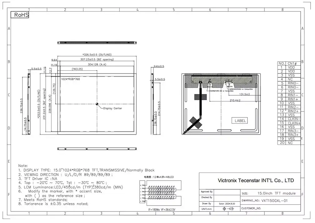 See Victronix 15,0 tolli 1024*768 IPS TFT moodul on suure jõudlusega elektrimoodul, mis on loodud usaldusväärse energiahalduse pakkumiseks nõudlikes rakendustes. See pakub klientidele esmaklassilist ekraani, millel on eraldusvõime 800 × 800 304,128 × 228,096 mm aktiivse piirkonnas, 89 ° vaatenurga (kõik suunad) ja tüüpiline 450 CD/m². Hiinas professionaalse TFT -mooduli tootja ja tarnijana vastab see Victronix 15 -tolline TFT -moodul rangelt ROHSi keskkonnastandarditele, et pakkuda paremat rakendust. Lisaks pakume kohandatud teenuseid, mis on kohandatud oma klientide konkreetsete vajaduste rahuldamiseks. See Victronix 15 -tolline TFT -moodul on loodud tehase automatiseerimise juhtimissüsteemide, visualiseerimisriistade, tööriistade juhtimissüsteemide, meditsiiniseadmete, reklaamimasinate, robotite, nutikate kodude, sülearvutite, digitaalkaamerate rakenduste, tööstusseadmete seadmete ja muude elektrooniliste toodete jaoks.