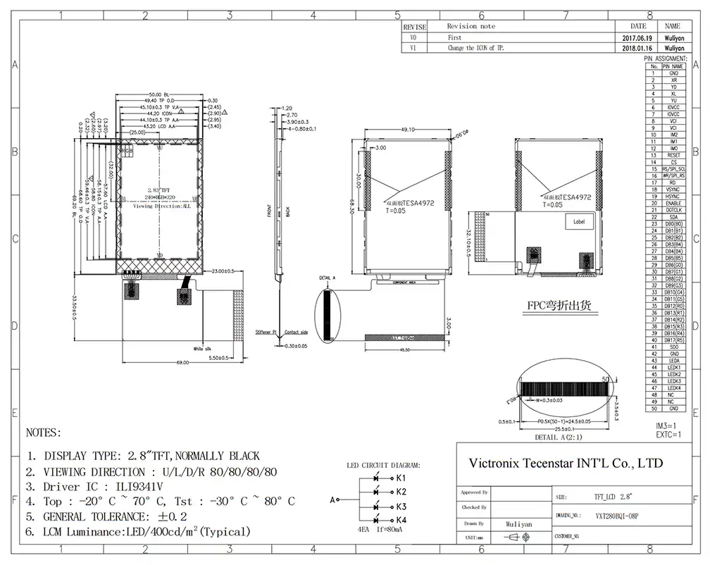 VXT280BQI-08P on TFT-LCD moodul. See koosneb TFT-LCD-paneelist, draiveri IC, FPC, seljavalgust. 2,8 -tolline takistuslik puudutus IPS TFT mooduli kuvamisala sisaldab 240 x 320 pikslit ja võib kuvada kuni 262K värvi. See toode vastab ROHSi keskkonnakriteeriumile.