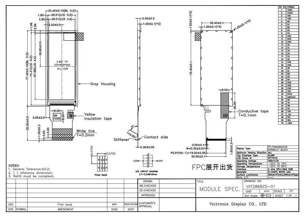 Intelligentsuse ajastul võimaldab TFT -moodul meil visuaalselt esitada vajalikke andmeid. TFT -mooduli kvaliteedil on selle rakendusele kriitiline mõju. Millised on Victronixi 2,86 tolli 376 × 960 IPS TFT mooduli eelised? Alguses tagavad selle 300 CD/m² heledus, 1500: 1 kontrasti suhe, 85 -kraadine vaatenurk kõigis suundades ja 80% ühtlus tagavad erksad kujutised. Teiseks toetab see SPI+16BIT RGB-liidest ST7701S-ga ja 5-seenise valge LED-i taustvalgus, mille elu jooksul on 30 000–50 000 tundi, tagades selle pikaajalise kasutatavuse erinevates tööstuslikes rakendustes. Lisaks vastab see ROHS -i standarditele ja läbib edukalt rangeid töökindluse teste, sealhulgas soojusšokk, niiskus ja ESD kaitse kuni 8kV õhu- ja 4KV kontakti. See toode töötab efektiivselt ekstreemsetel temperatuuridel vahemikus -20 ° C kuni +70 ° C ja talub tugevaid säilitamistingimusi vahemikus -30 ° C kuni +80 ° C.
