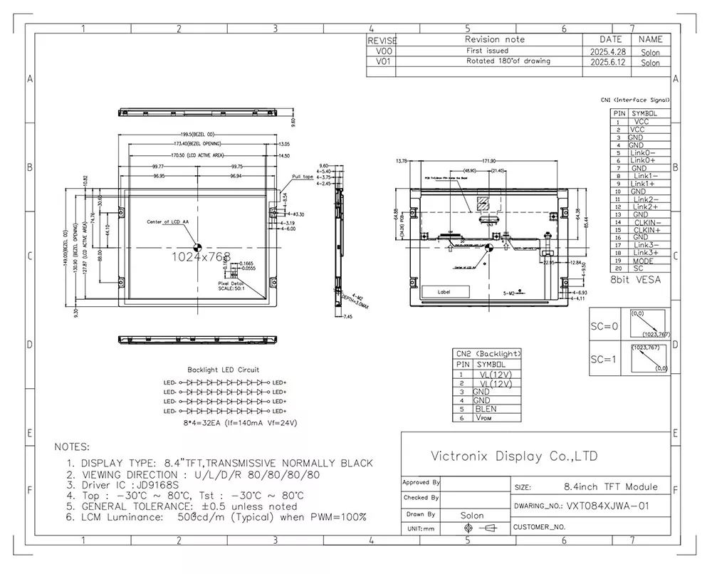 TFT LCD on teatud tüüpi vedelkristallide ekraanil, mis kasutab pildikvaliteedi suurendamiseks õhukese kilega transistori tehnoloogiat ja sellel on igapäevaelus arvukalt rakendusi. Mis teeb Hiinas professionaalse TFT -mooduli tootja ja tarnijana, mis teeb Victronixi 8,4 tolli 1024 × 768 IPS TFT LCD teistest tootjatest erinevaks? Esiteks pakub see tüüpilist heledust 500 CD/m², 85 ° laiuseid vaatenurki igas suunas ja kontrasti suhe 1500: 1, tagades suurepärase loetavuse erinevate nurkade alt. Teiseks integreerib see taustvalgustuse, kasutades 32 valget LED -i, mille eluaegne eluaeg on 50 000 tundi (kuni 50% esialgse heleduseni), tagades selge nähtavuse kõigis valgustustingimustes. Lisaks toetab see LVDS -i liidest ESD kaitse ja JD9168S -kontrolleriga. Lisaks läbib see ranget keskkonnakatset, sealhulgas termilist šokki (-30 ° C ↔ +80 ° C tsüklid), õhuniiskuse säilitamist (60 ° C/90% RH) ja mehaanilist vibratsiooni, tagades, et see suudab sujuvalt töötada laiendatud temperatuuride vahemikus (-30 ° C kuni +80 ° C).