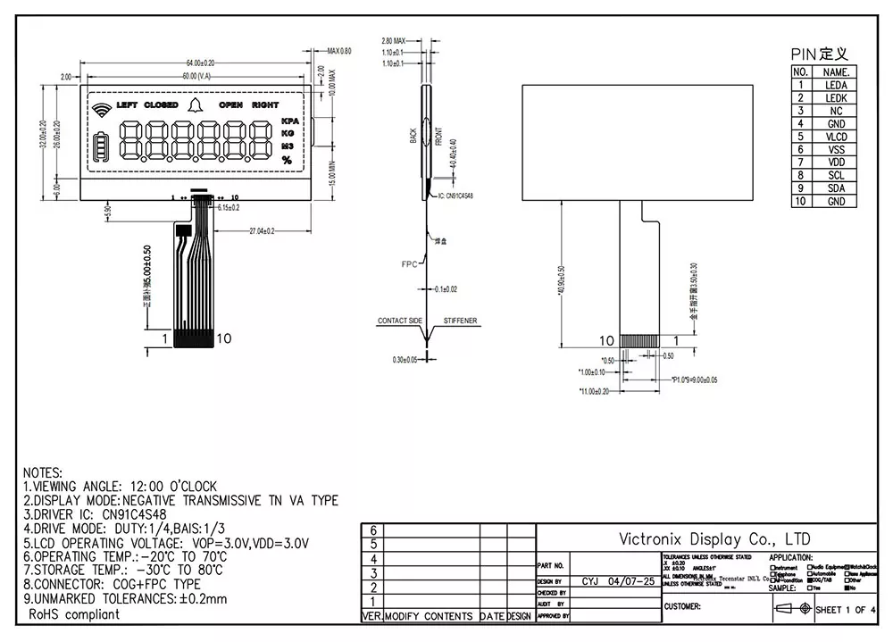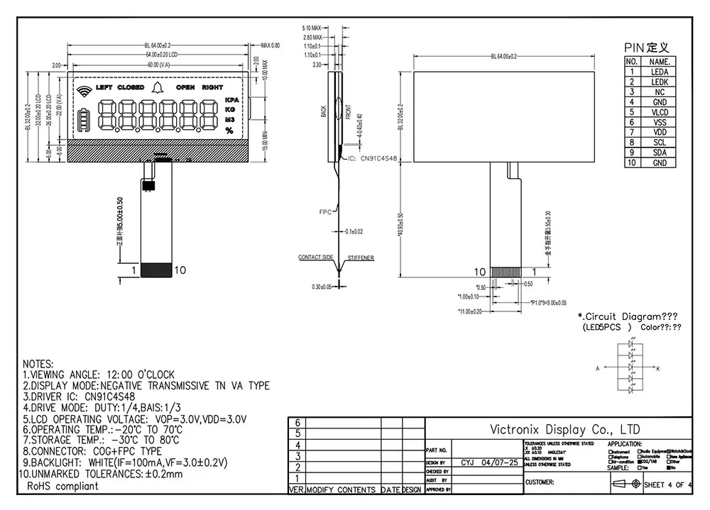 See Victronix VA segment LCD -moodul sobib madala ajami pinge ja madala voolu tarbimiseks. Suure kontrasti ja odavate kulude tõttu kasutatakse seda laialdaselt ampermeetri, multimeetri, termomeetri jms jaoks.